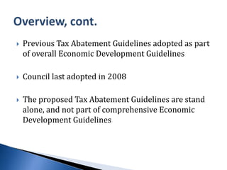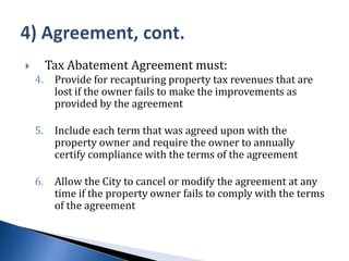Savings can allow business owners to create jobs in the area. If an individual or. Abatements can range in length from a few months to several years.